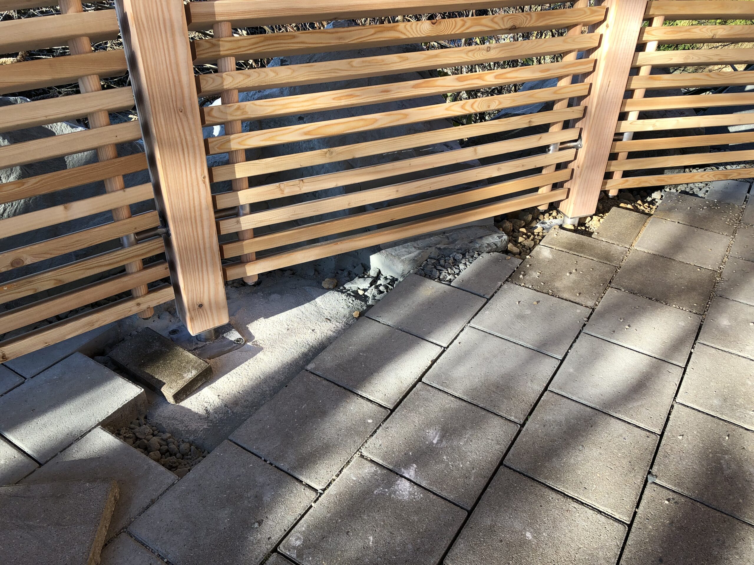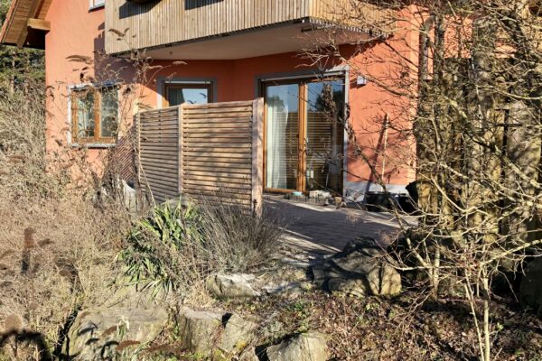 Geht nicht, gibt‘s nicht! Diese vier hidex Sichtschutzelemente haben wir auf der Terrasse eines Kunden aus Pegnitz aufgebaut. Winkel, Höhen, Längen: alles maßgeschneidert!