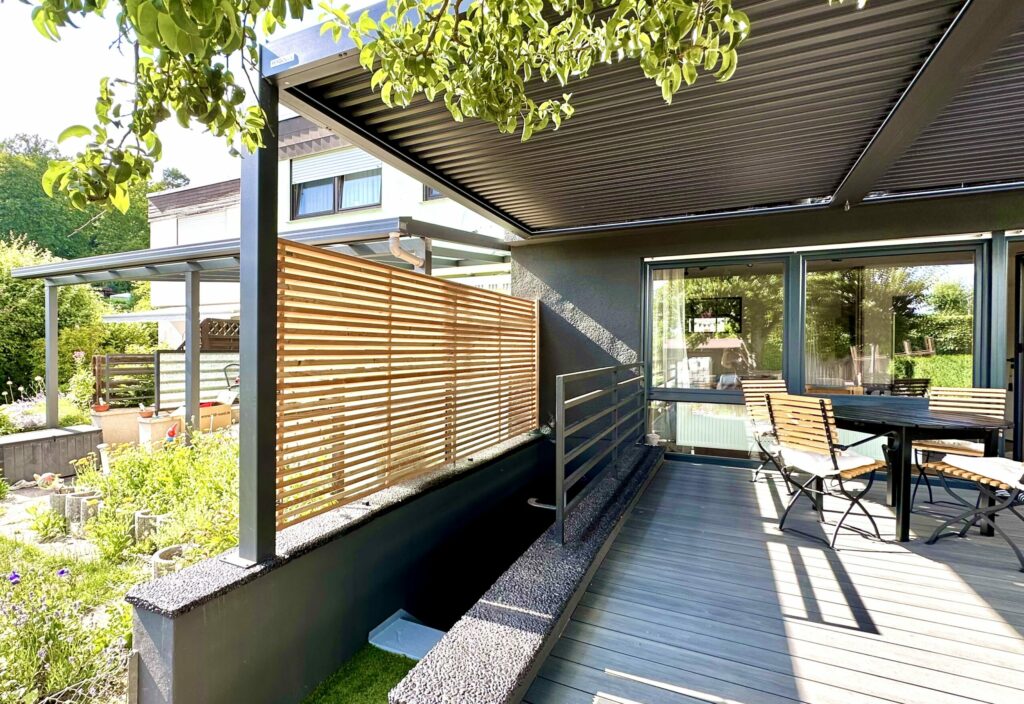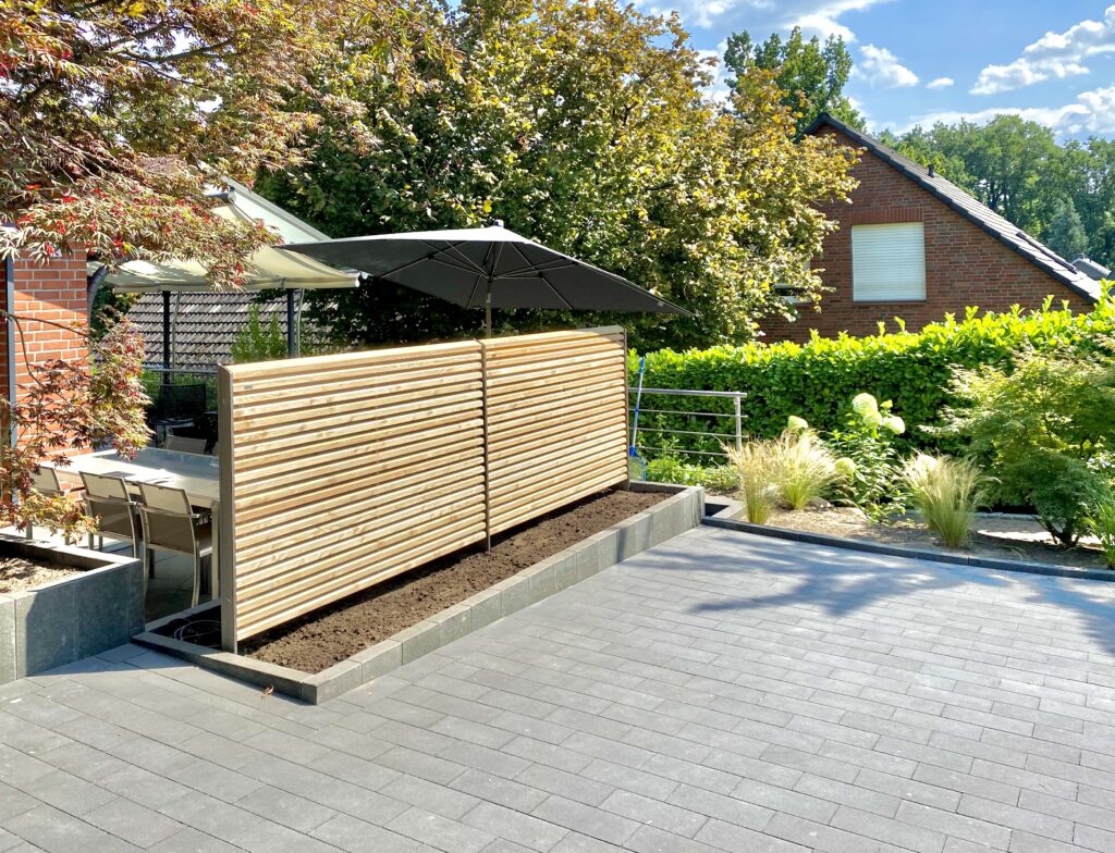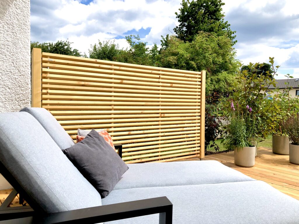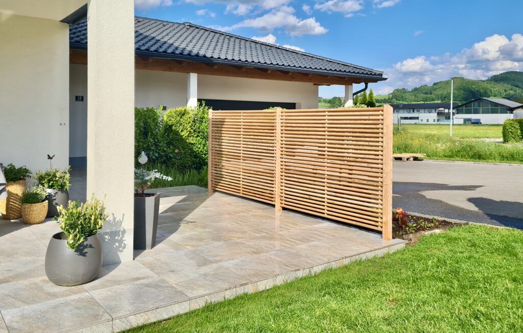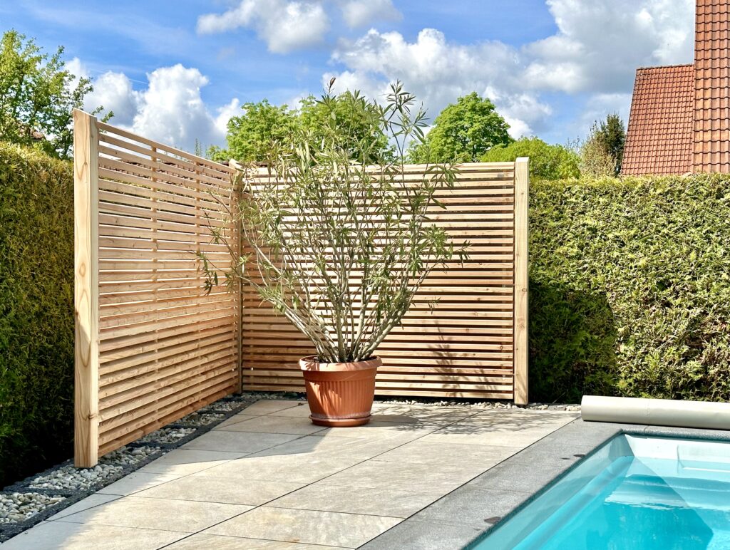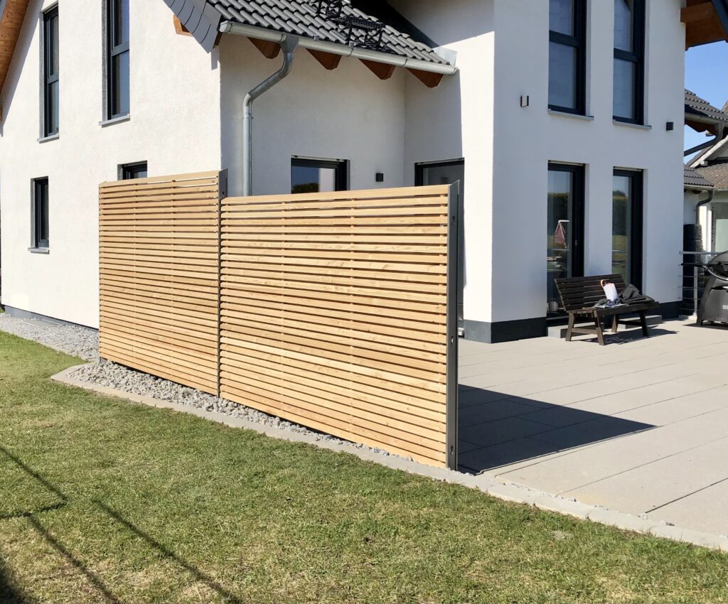 Warme, natürliche Holztöne und kühle Metalloberflächen verleihen Ihrem Sichtschutz eine zeitlos moderne Ästhetik. Die Materialwahl ist kein Zufall, sondern wird bedarfsgerecht für die Anwendung im Exterieur oder Interieur ausgelegt.